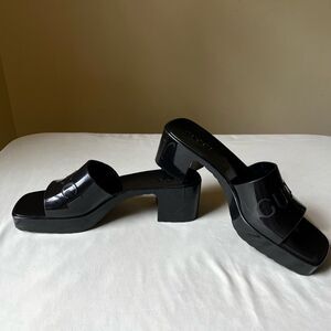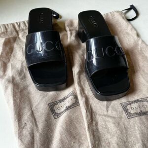 Step out in style with these elegant black slide sandals from Gucci. Perfect for any occasion, these shoes offer both comfort and luxury.