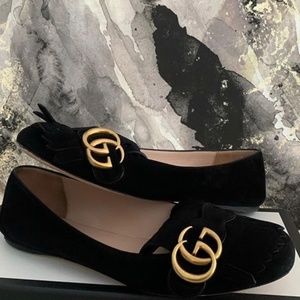 Elegant black flats with iconic gold logo. Perfect for any occasion. Please see the last picture for call out.
