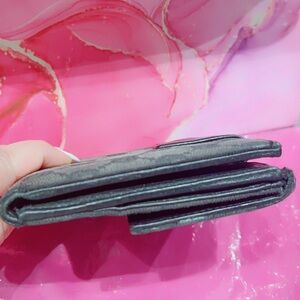 Stylish Gucci wallet. Features iconic pattern. Compact and elegant design.