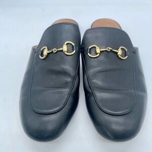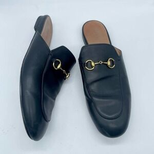 Gucci Black leather Princetown mule loafer flats with horsebit details 41