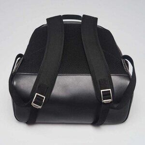 Handles: Double flat adjustable canvas backpack straps and leather top loop