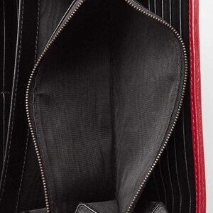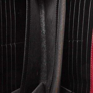 The exterior leather remains clean and beautiful throughout but there is some light rubbing to the red leather trim at the corners and on the flap. The hardware is bright and crisp. The interior is clean and in excellent condition.