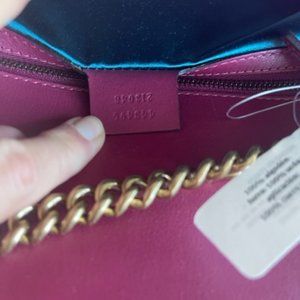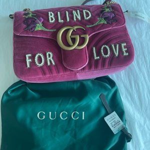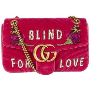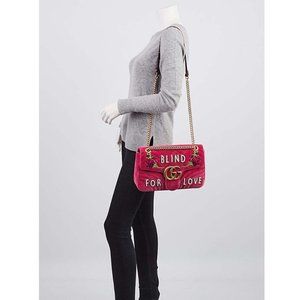 Gucci Blind For Love Pink Rose Velvet Handbag Bag Marmont GG Gold Purse Italy NEW
