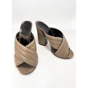 Gucci Block Heels Brown Quilted Leather Open Toe Slides Kid Mules Sz EU 35 5