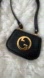 Chic Gucci crossbody in black leather. Features bold gold logo detail. Perfect for versatile styling.