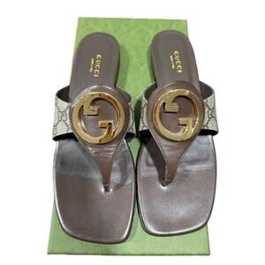 Gucci Blondie Interlocking G Flat Thong Sandal Monogram Supreme GG 38.5