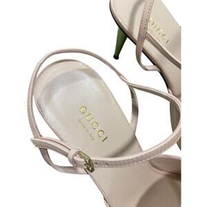 Gucci Blondie Leather Light Pink Sandal 85mm 38.5 Ankle Strap Gold Interlocking G