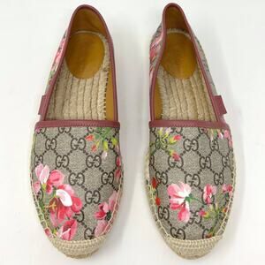 Gucci Bloom Pink Floral Logo Monogram Espadrilles Slip-On Flats Size EU 38.5