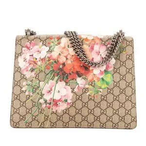 Gucci Blooms Dionysus Beige Burgundy Supreme Canvas Shoulder Bag