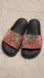 Authentic Blossom Gucci slide sandals with a floral design. Features a mix of pink and green flowers on a brown base.