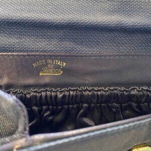 For sale is a vintage blue corde Gucci two-way evening bag with gold accents & a chain strap.