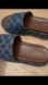 Stylish Gucci slide sandals. Blue denim with signature pattern. Comfortable brown footbed.