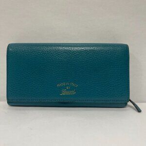 Gucci Blue Pebbled Leather Swing Continental Wallet - Preowned