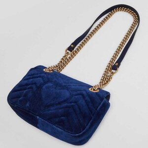 Gucci Blue Quilted Velvet GG Marmont Mini Shoulder Bag
