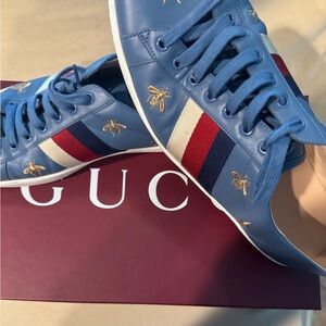 Gucci Blue Sneakers with Gold Embroidery
