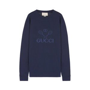 The preppy influence seen throughout the Gucci narrative continues to evolve with a new sports-themed logo created for Autumn Winter 2019. Crafted from blue cotton, this tennis embroidered long sleeves logo shirt features a crew neck and elasticated cuffs.