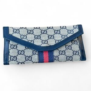 Gucci Blue/Beige with Red Stripe GG Supreme Canvas Vintage Wallet