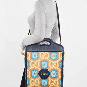 Gucci Blue/Multicolor Coated Canvas/Leather 100 Large Ophidia Tote Bag