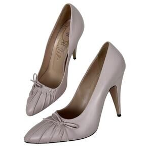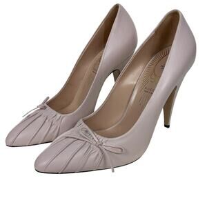 Gucci Blush Pink Charlotte Nappa Leather Bow Pump Heels 10