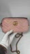 Chic Gucci crossbody in blush quilted design. Features iconic logo detail. Ideal for stylish outings.