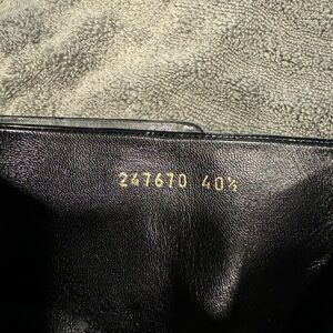 Gucci black patent leather ankle boots with light gold tone stud embellishment and heel detail. The zipper pull is “Gucci” embossed. Leather upper, sole and interior. Style 247670; Size 40.5 Italian (US 9.5-10). Worn a few times. Great condition! One small scuff on right boot (pictured)