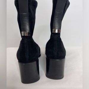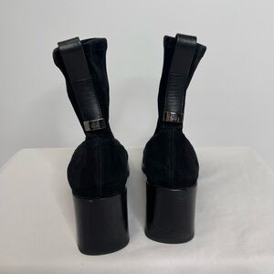 Authentic Gucci suede and leather booties. Hits a little above the ankle. Minimal structure to the ankle but it is fitted so doesn’t need it. Silver Gucci hardware on the back. A few scuffs along the back of the heel. A little bit of wear on the toe but overall really good condition! Leather sole and inner lining, suede on the outer shell.