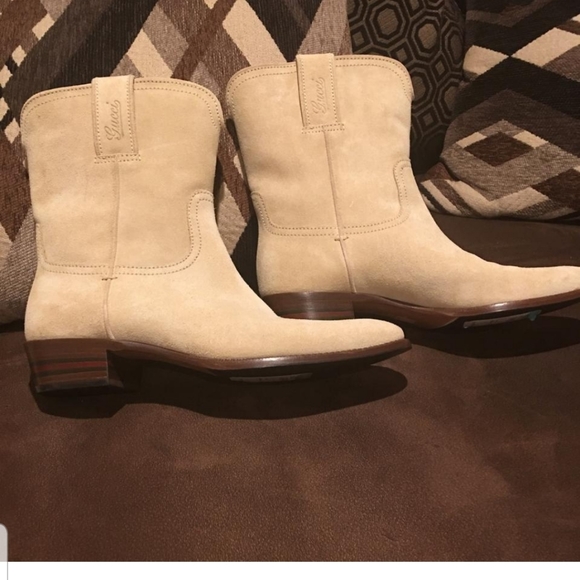 Cream Gucci Suede Cowboy Mid-Calf Boots/Booties Sz U.S 8