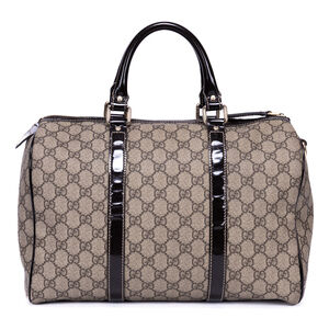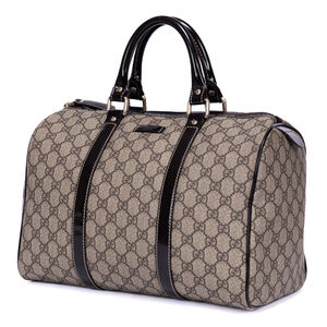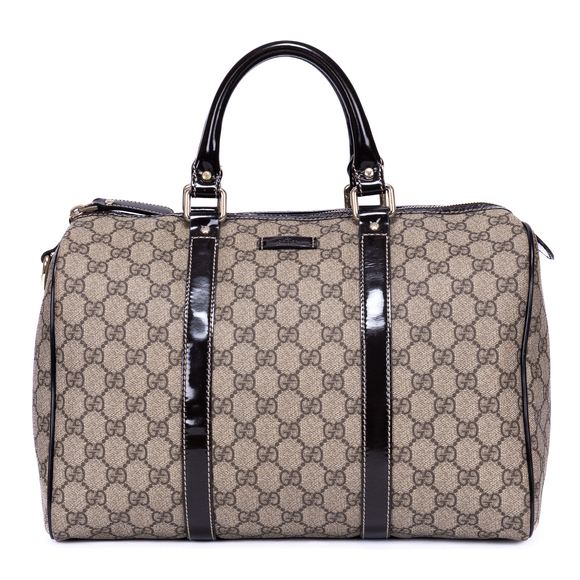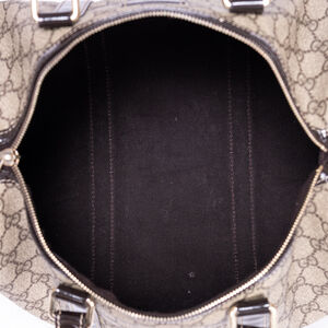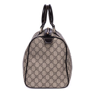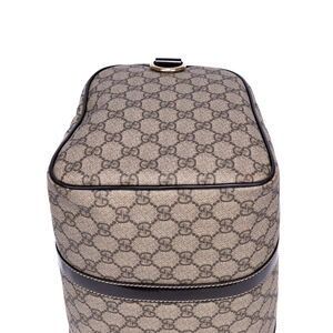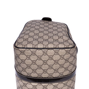 Gucci Handbag Boston in Beige/Dark Brown GG Supreme Coated Canvas and Champagne Gold hardware. The product is in Perfect Condition (AA).