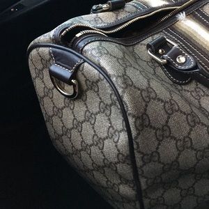 Authentic Gucci bag. Includes dust bag. Serial # hard to take pic of. Good condition but has Pulling of the stitching. Price is firm. Scarf included. Boston Joy Handbag. No trades Product Details