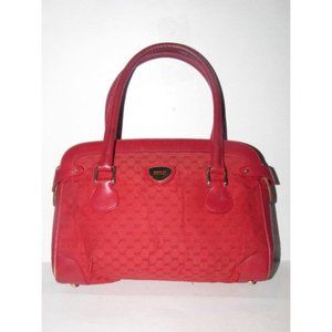 It has two handles and is called a 'speedy bag' or doctor's satchel. This is one of the more rare versions of the satchel style and is a classic. The bag is made of a red small 'G' logo style print in canvas and red leather. There is a zip closure on top and buttoned sides for more room. I have some of the other versions of Gucci's satchel in browns, blacks, and blues for sale in other ads.
