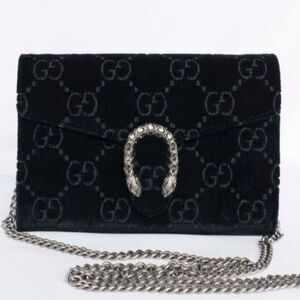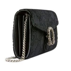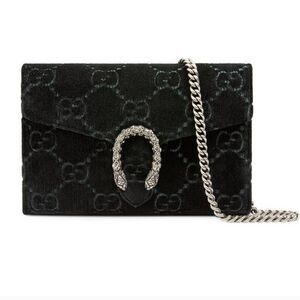 Gucci Brand new Authentic Women's Black GG Velvet Mini Dionysus Chain purss