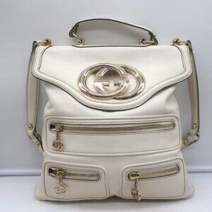 GUCCI BRITT INTERLOCKING GG MESSENGER BAG CREAM LEATHER