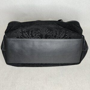 Gucci Brocade Soft Stirrup Black Suede Leather Purse Tote Handbag