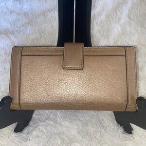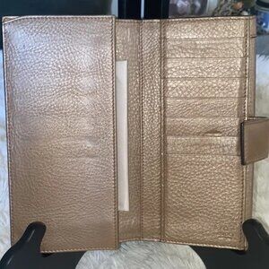 Gucci Bronze Gold Tan Metallic Italian Leather Continental Flap Long Wallet