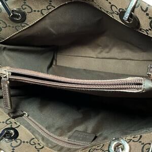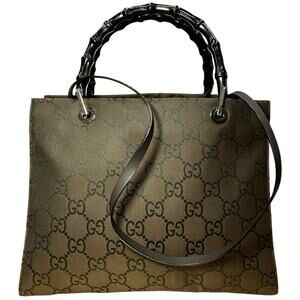 This Gucci Bamboo GG tote bag is the perfect blend of luxury and practicality. It features two elegant black bamboo handles and silver-tone hardware, adding a touch of sophistication to its design. Crafted with the iconic GG monogram canvas, this bag is a timeless piece.