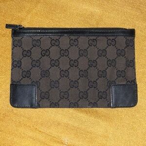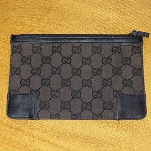 Gucci Brown GG Logo Pattern Canvas Cosmetic Pouch w/Leather Trim