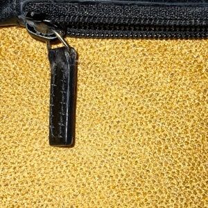 Excellent vintage condition. The leather inside is causing the zipper to stick a bit but it does work. A cobbler could fix that for a few dollars.