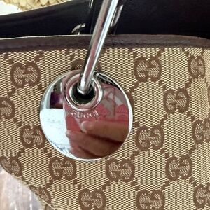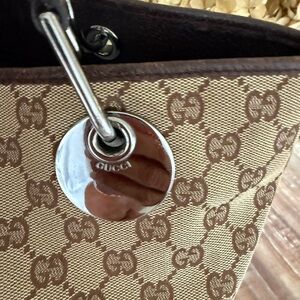 Elevate your style with the Gucci Brown Monogram Tote Bag. This elegant accessory features the iconic Gucci pattern, perfect for any occasion.