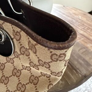 There is normal wear on leather trim and wear on the very bottom of the bag . Please see pictures!! What you can’t see is there is no smell, very clean. I have treasured this bag. If you’re a Gucci girl you’re gonna love it too !! perfect bag to be bougie on a budget