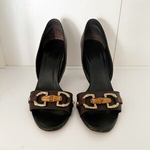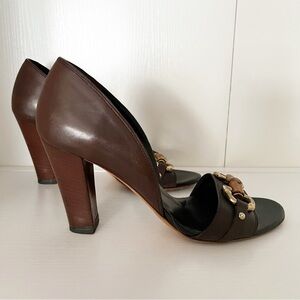 Gucci Brown Heels with Gold Accents