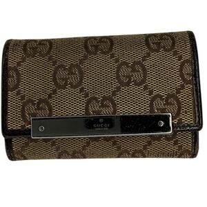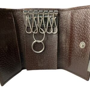 This stylish Gucci key case is the perfect accessory to keep your keys organized and secure. Crafted in brown leather, this key case exudes sophistication and luxury. It comes complete with its original box and tissue paper, adding to its collectible appeal. While it has been gently used, there are minor scratches on the hardware, and some edge rubbing, which are consistent with normal wear. Overall, this Gucci key case remains in excellent condition and is ready to be a treasured addition to your collection.