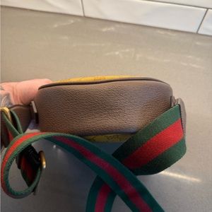 Elegant brown leather crossbody bag by Gucci. Features a spacious interior.