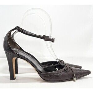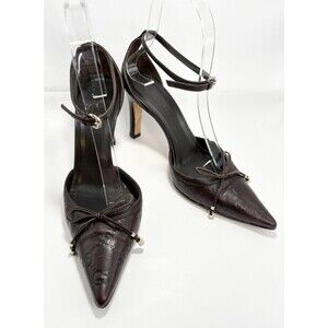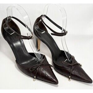 Gucci Brown Leather Guccissima GG Monogram Heels w/ Bow Accent Y2K Sz EU 36C 6