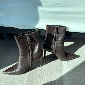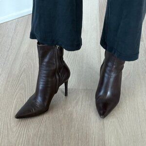 Gucci Brown Leather Pointed Toe Heeled Boots
