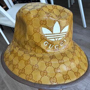 Stylish Gucci bucket hat. Features iconic monogram pattern. Perfect for any occasion.