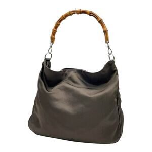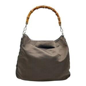 Gucci Brown Nylon Bamboo Handle 2Way Hand Shoulder Bag