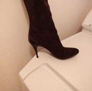 Experience luxury and warmth with these Gucci brown over the knee boots, crafted with a textured design for a stylish touch. Perfect for colder weather, these boots combine comfort and elegance, making them a must-have addition to your wardrobe.