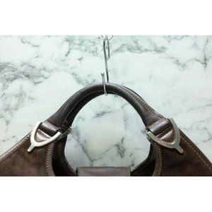 Gucci Brown Top Handle Shoulder Bag Suede Leather Gold GG