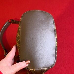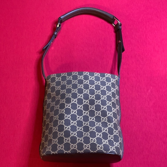 EUC Tom Ford era Gucci brown shoulder bag with signature GG pattern. Features a sturdy padded leather strap with gold hardware. Interior features 2 open compartments and 2 zippered pockets. Comes with papers and dust bag. Measurements are 9” x 8” x 4 1/4” and have been taken to the best of my ability. Smells of perfume in my opinion. Please feel free to ask any questions you may have before purchasing.