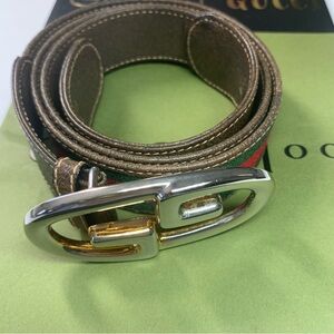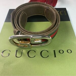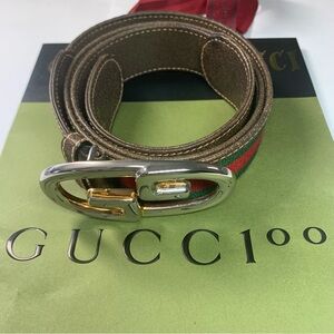 Gucci Brown and Green Leather Belt with Gold Buckle